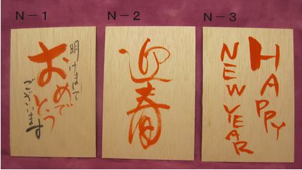 ・メッセージ内容は15文字以内でお願いいたします。 ・木札左下にお名前をお入れいたします。 木札は葉書大で、厚さ2ミリの《創作木札》白木の板になります。 「カート」に入れた後にいずれかメッセージをお選びいただき、 「左下に記載するお名前の欄」にご記入をお願いします。