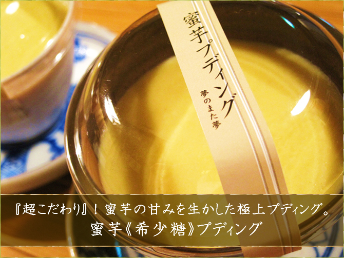 | 蜜芋プディング | 蜜芋、ノンホモジナイズ牛乳、生クリーム、健康卵、希少糖(D-プシコース・D-アロースなど)が15%程度含まれた希少糖含有シロップ(液糖)、とうもろこし由来の澱粉トレハロース、きび黒糖、レモン汁、自然天日塩、バニラエッセンス | 1個約100g | 1個あたり 直径約7.5cm×高さ約6cm |